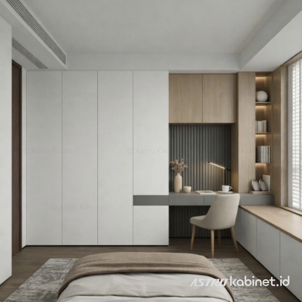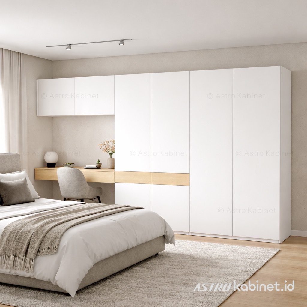Lemari kombinasi meja rias/belajar, Bentuk L untuk ruangan 340x160cm