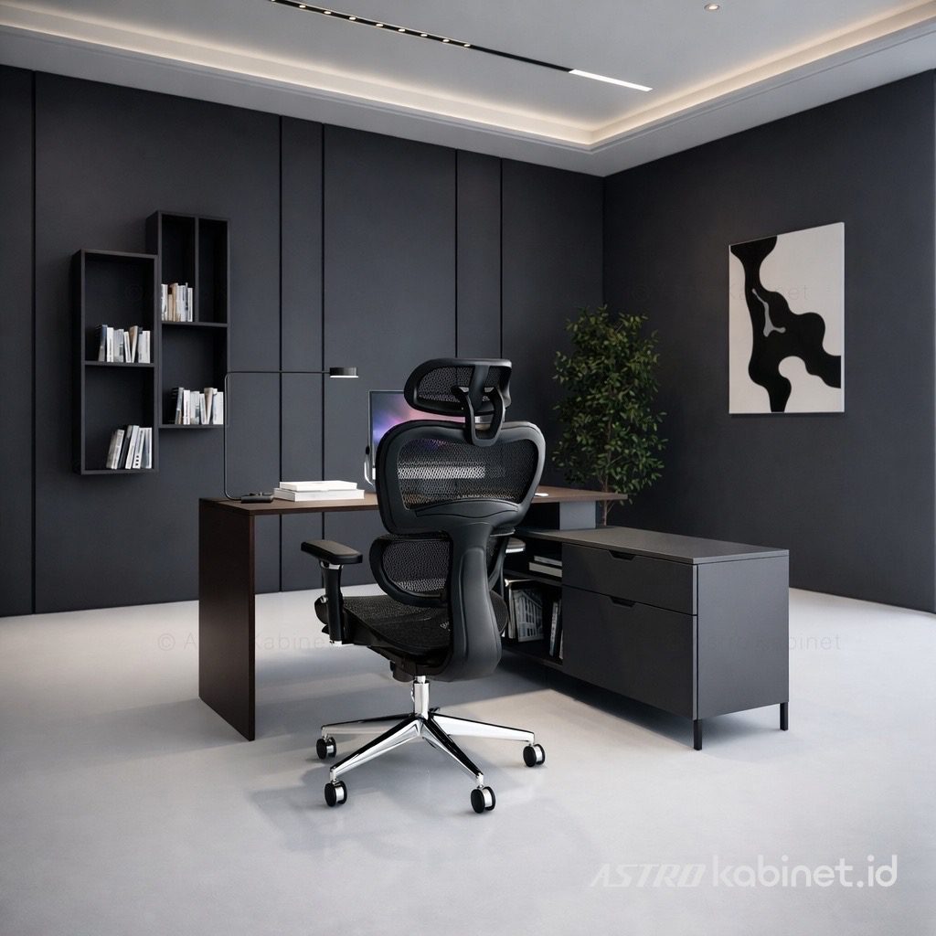 DEX meja L dengan Credenza File Cabinet 160x140cm