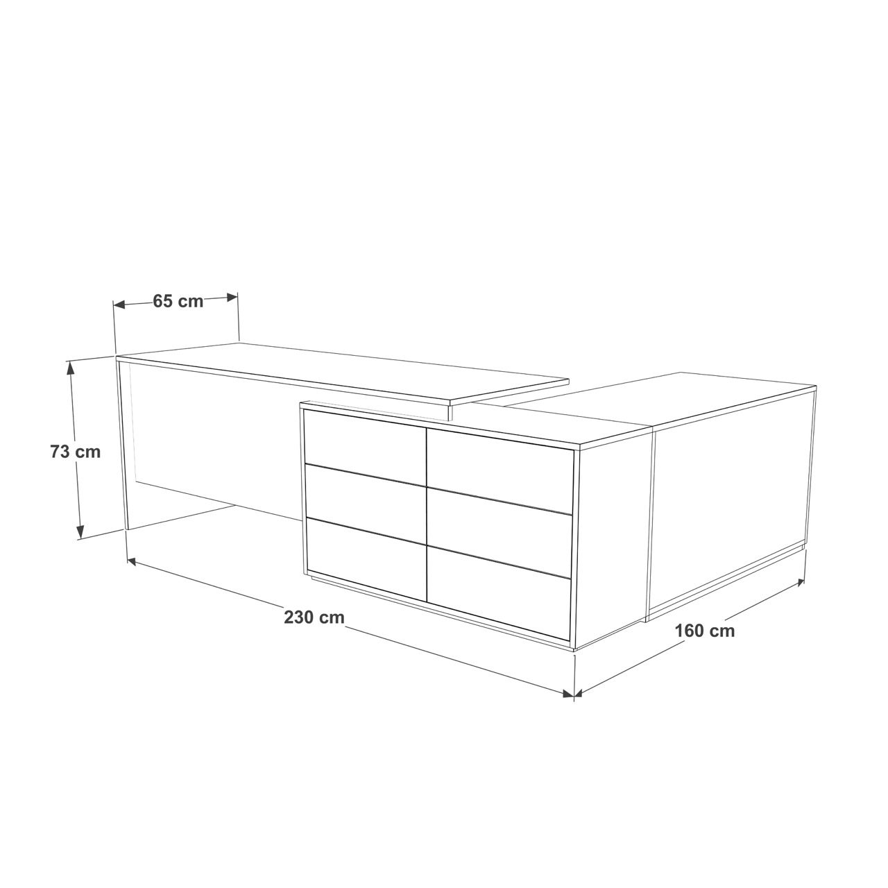 DEX Meja bentuk L dengan 4 laci dan penyimpanan 160x140cm